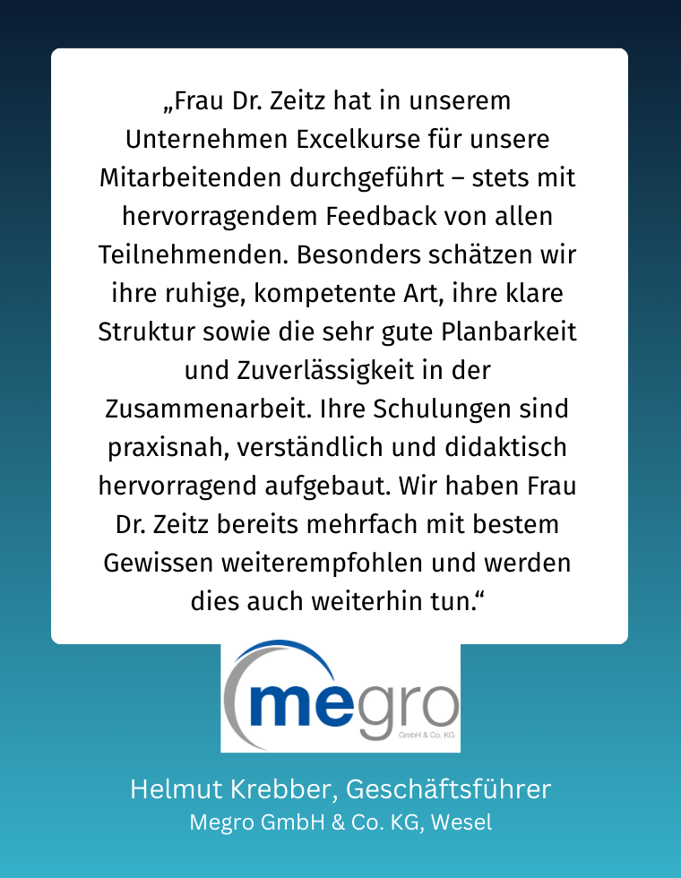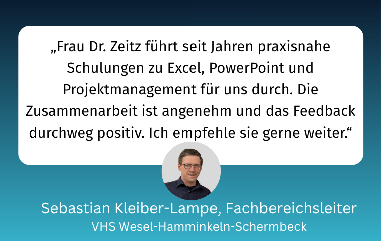 Ihre Mitarbeiter sollen Excel effizient nutzen, überzeugende Präsentationen erstellen und Meetings souverän leiten. Doch oft fehlen Zeit, Struktur oder das passende Know-how. Genau hier setze ich an.